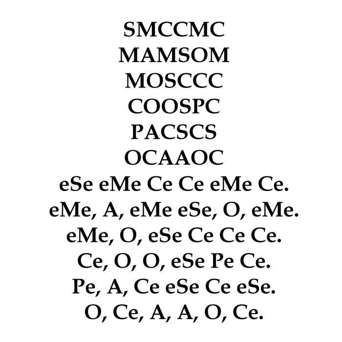 eMe, O, eSe Ce Ce Ce.