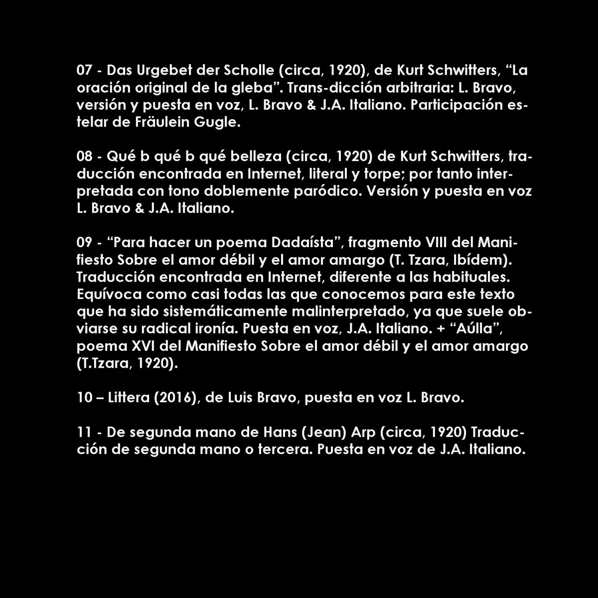esperanto significa: tierra sonora. Entre este paisaje digital rodeado de bits, elijo sembrar en esta virtualidad de la nada, mis trabajos vinculados al espacio sonoro. Una palabra veloz en el aire, una nota suspendida en el espacio, un ejercicio para matizar el silencio.