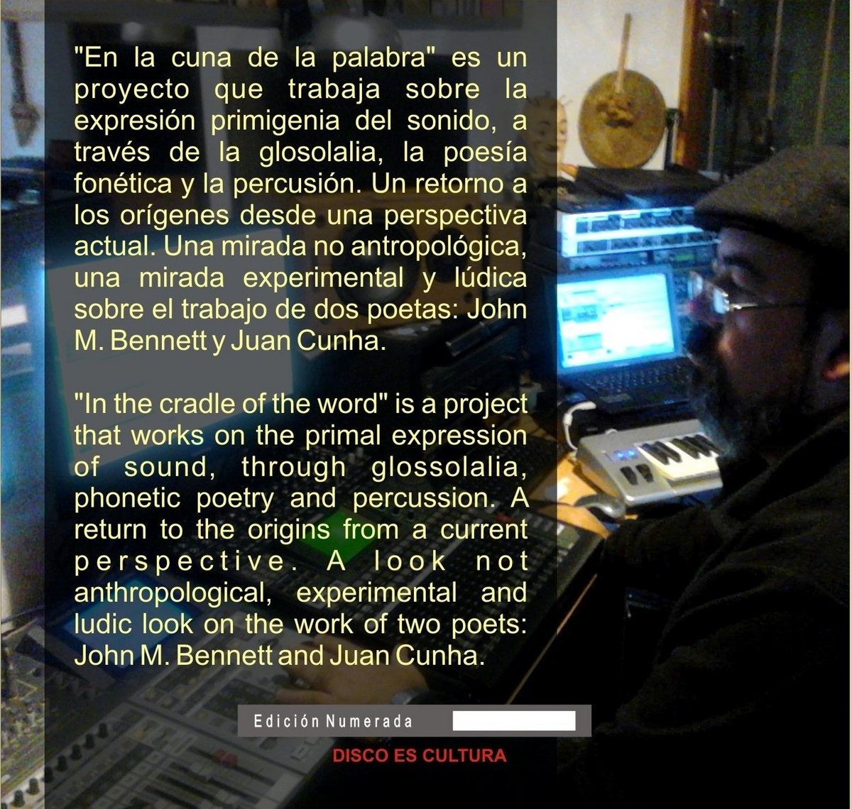 esperanto significa: tierra sonora. Entre este paisaje digital rodeado de bits, elijo sembrar en esta virtualidad de la nada, mis trabajos vinculados al espacio sonoro. Una palabra veloz en el aire, una nota suspendida en el espacio, un ejercicio para matizar el silencio.